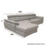 Димензии: Ш: 325х170 В: 75/90 Д: 101 cm, кога е пуштен: 118х190 cm