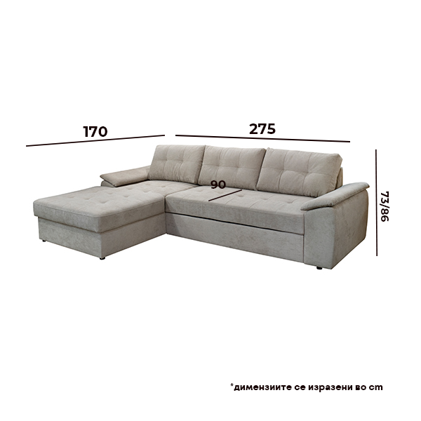 Димензии: Ш: 275х170 Д: 90 В: 73/86 cm