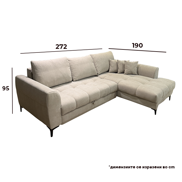 Димензии: 272х190×95 cm, пуштен: 272×152 cm