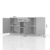 Современата и функционална Комода Piano K180 3K1F е совршен избор за секоја модерна дневна соба. Со три крила и една фиока, оваа тв комода овозможува практично складирање, додека високо-сјајниот УВ лак во кристално бела боја ѝ дава елегантен изглед. Предните, горните и страничните панели се внимателно изработени за стил и издржливост, а механизмот за меко затворање овозможува тивка и лесна употреба. Внатрешноста е целосно бела, а хромираните рачки и ногарки додаваат модерен акцент.