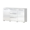 Овој модел има две крила и три фиоки, овозможувајќи доволно простор за складирање на облека, постелнина или лични предмети. Механизмот на меко затворање овозможува тивко и безбедно користење, додека длабочината на фиоките до 16 cm ја прави комодата исклучително практична за секојдневна употреба.