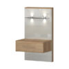 Со димензии од 56 x 100 x 47 cm, таа нуди доволно простор без да зазема премногу место. Опремена е со една фиока со меко затворање и стилска стаклена полица која додава допир на елеганција.