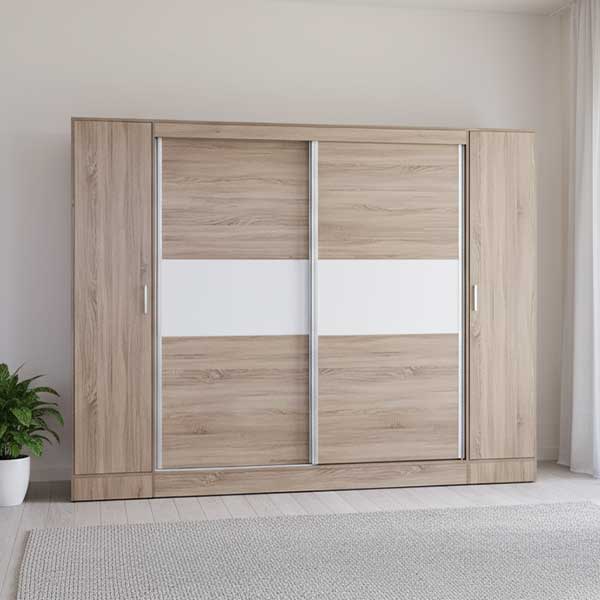 Практичен, висококвалитетен плакар кој со својот дизајн Ви овозможува максимален простор за складирање на Вашата облека и аксесоари. Плакарот има двостран лизгачки механизам како и можност за дополнително крило со полици.