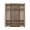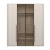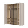 Функционален плакар со 2 крила лакирани со УВ soft mat лак во декор Кашмир и 2 стаклени фронта со алуминиумска рамка во декор Midnight Copper.