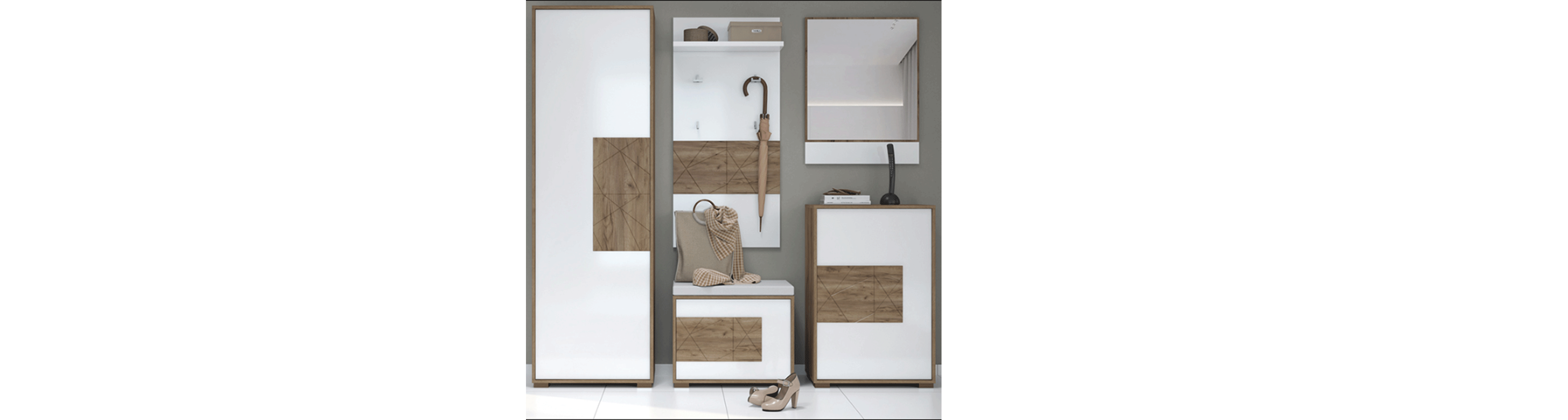 Овој сет е идеален за функционално претсобје, обезбедувајќи ред, лесен пристап до секојдневни работи и хармоничен изглед со модерен финиш.