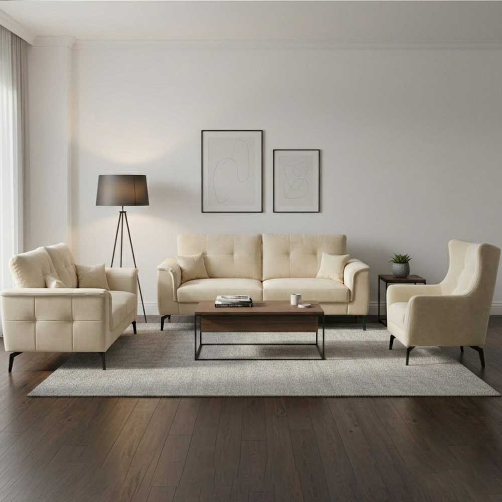 Изберете го Almak и збогатете го вашиот простор со комплет што нуди сè – тросед, двосед и фотелја.