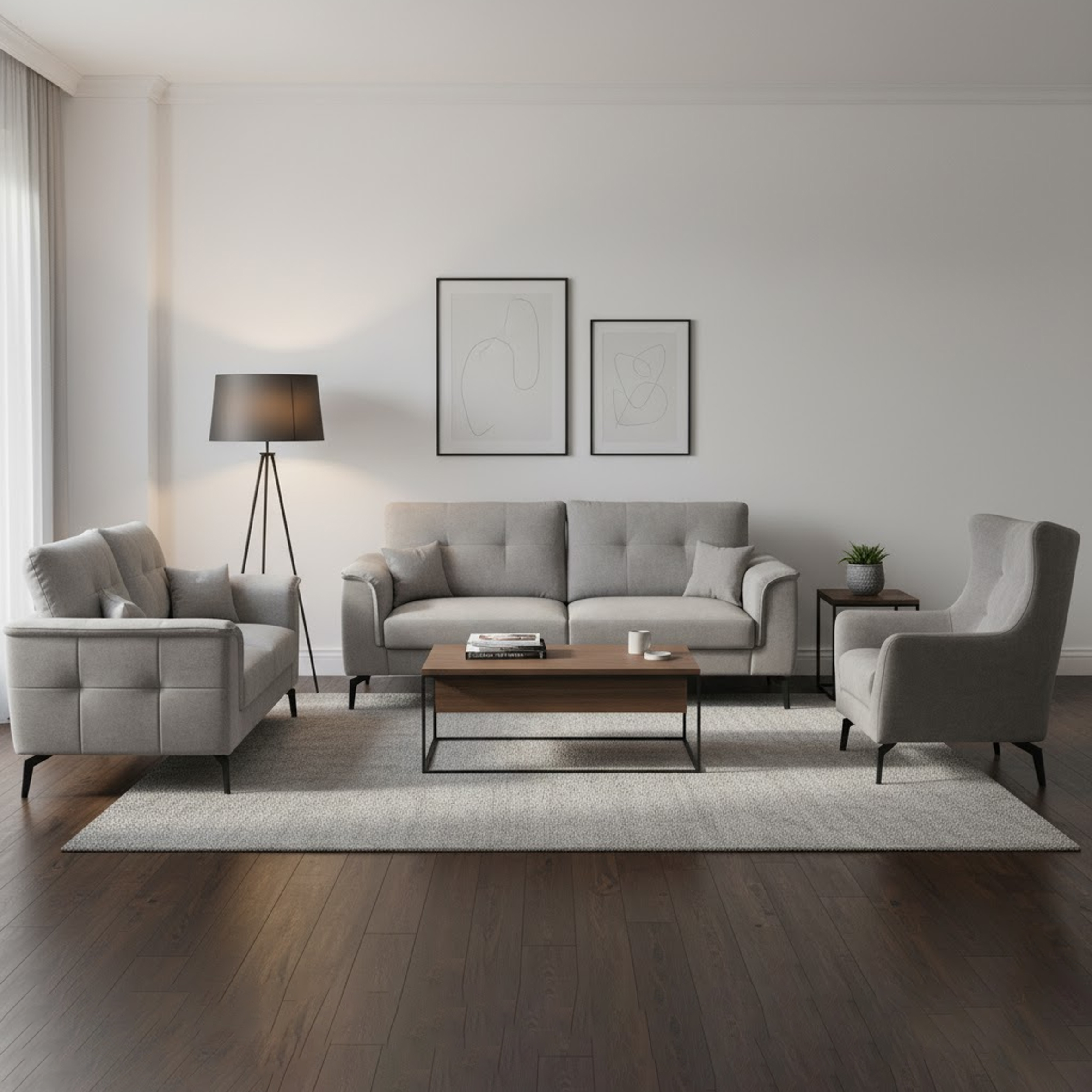 Изберете го Almak и збогатете го вашиот простор со комплет што нуди сè – тросед, двосед и фотелја.