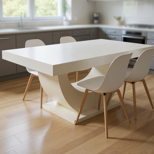 Трпезариска маса 132 е идеален избор за вашата трпезарија. Со дебелина на плотна од 10cm, оваа маса обезбедува стабилност и долготрајна употреба. Додадете ја со соодветни столови или столици за комплетен изглед на вашето јадење. Ние ви нудиме трпезариски маси и столови кои се одликуваат со врвен квалитет и елегантен дизајн. По купувањето ќе бидете контактирани од нашата доставна служба за дефинирање на термин за испорака, а купените производи ќе бидат испорачани во најкраток можен рок.