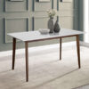 Трпезариска маса Еко-2 е совршен избор за кујна или трпезарија. Со димензии 140x80x80 cm, масата е изработена од висококвалитетен медијапан. Ногарките се од цврсто дрво, што овозможува стабилност и долготрајност.