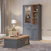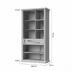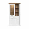 Витрина Tara-V3K1F носи премиум изглед и практичност во дневната соба: три крила (горното со рамка од калено стакло), една фиока и отворени полици за изложување. Фронтовите од резбан медијапан се лакирани со УВ лак со мек мат ефект во графит или бела боја, а механизмот на меко затварање обезбедува тивко користење. Профилираните лајсни од медијапан (25 mm) додаваат елегантен класичен акцент.